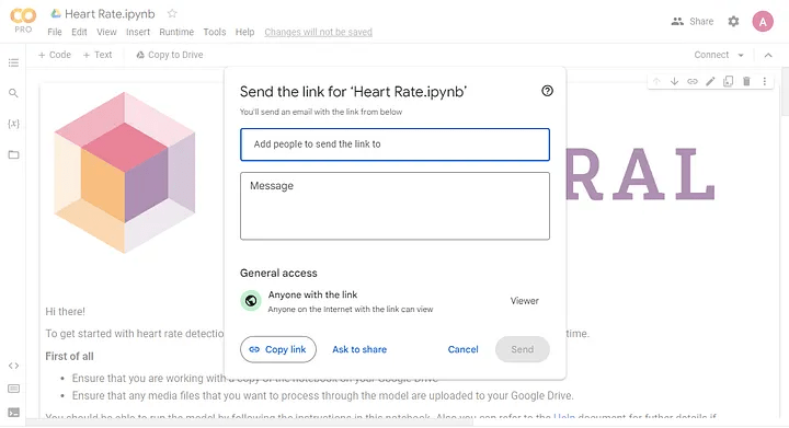 All of your Google Colab notebooks are stored in your Google Drive account, just like your Google Docs and Sheets files. You can then easily share them with other people and edit them if you wish.